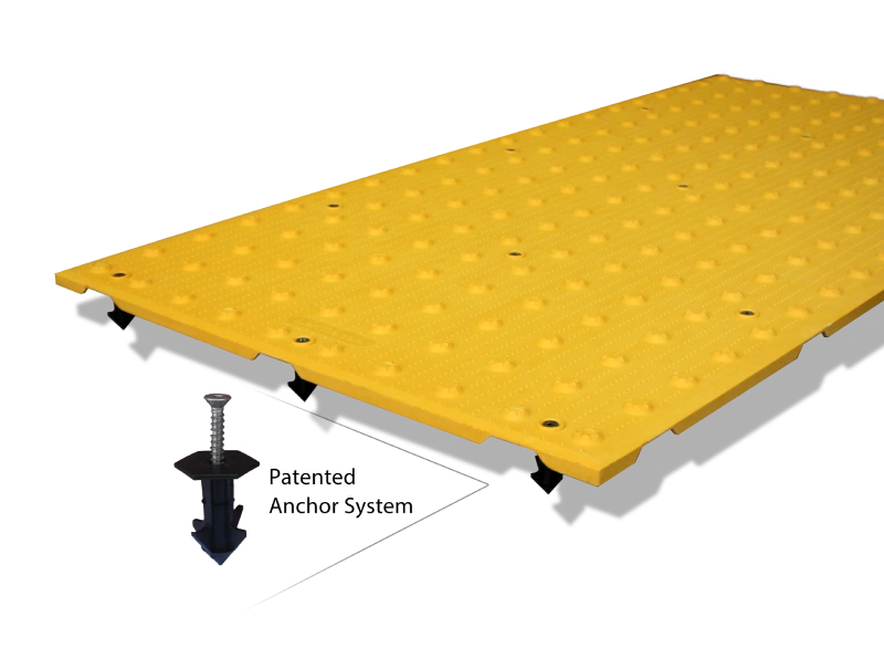 | Installation Type | Peel-and-stick (surface applied) | Surface applied with anchors | Cast-in-place replaceable (AlertCast) | Cast-in-place | Cast-in-place with interlocking design. |